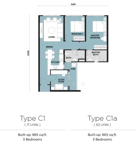 This floor size of this unit is 865 sqft.