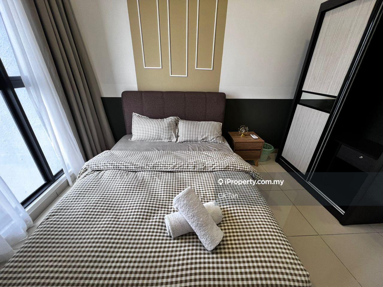 -Fully furnished Air-conditioning unit, ceiling fan, water heater, curtain, fridge, washing machine, queen size bed with mattress, wardrobe, sofa, TV, kitchen cabinet with hob & hood.