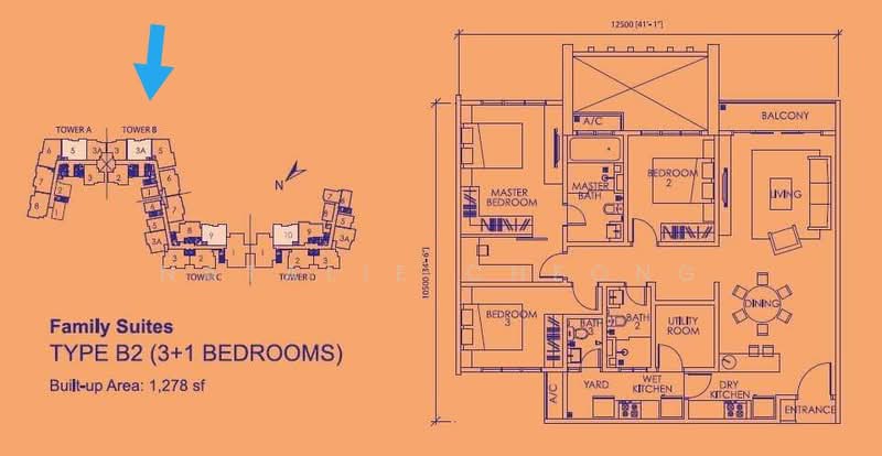 This floor size of this unit is 1,278 sqft.