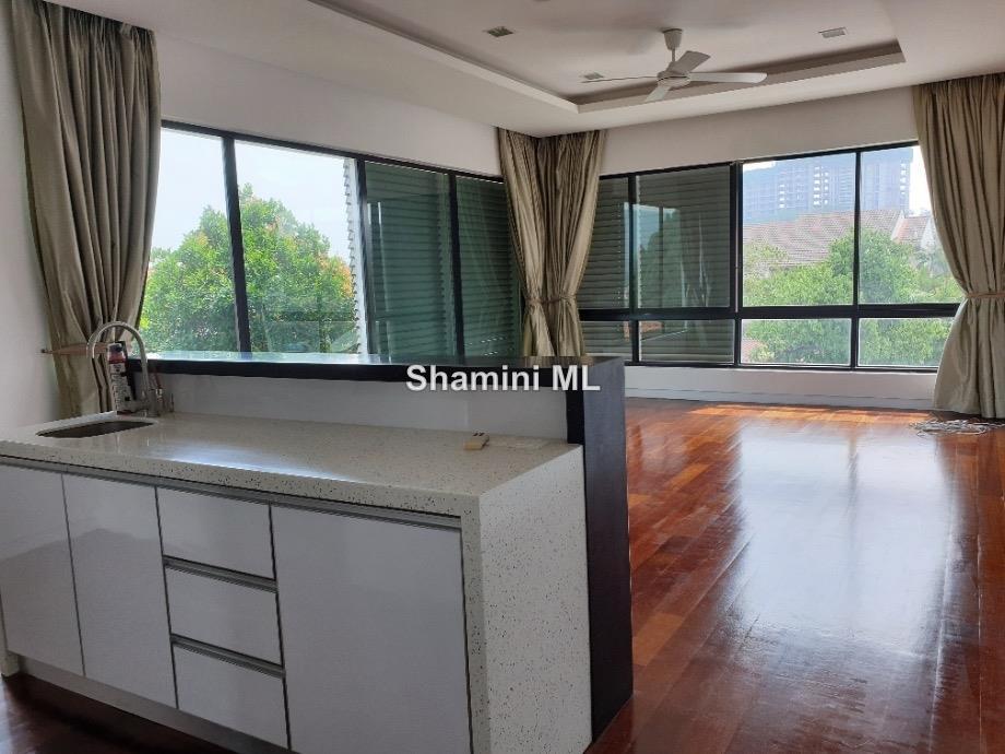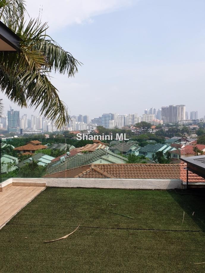 This lovely 3 storey bungalow is located on a guarded street and has amazing views of Mont Kiara, PJ and surrounding areas. Almost brand new, all fittings and fixtures are top-notch. Quality timber flooring and expensive tiles are extensively used.