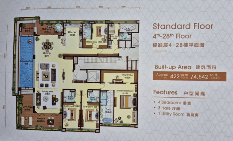 This floor size of this unit is 4,542 sqft.