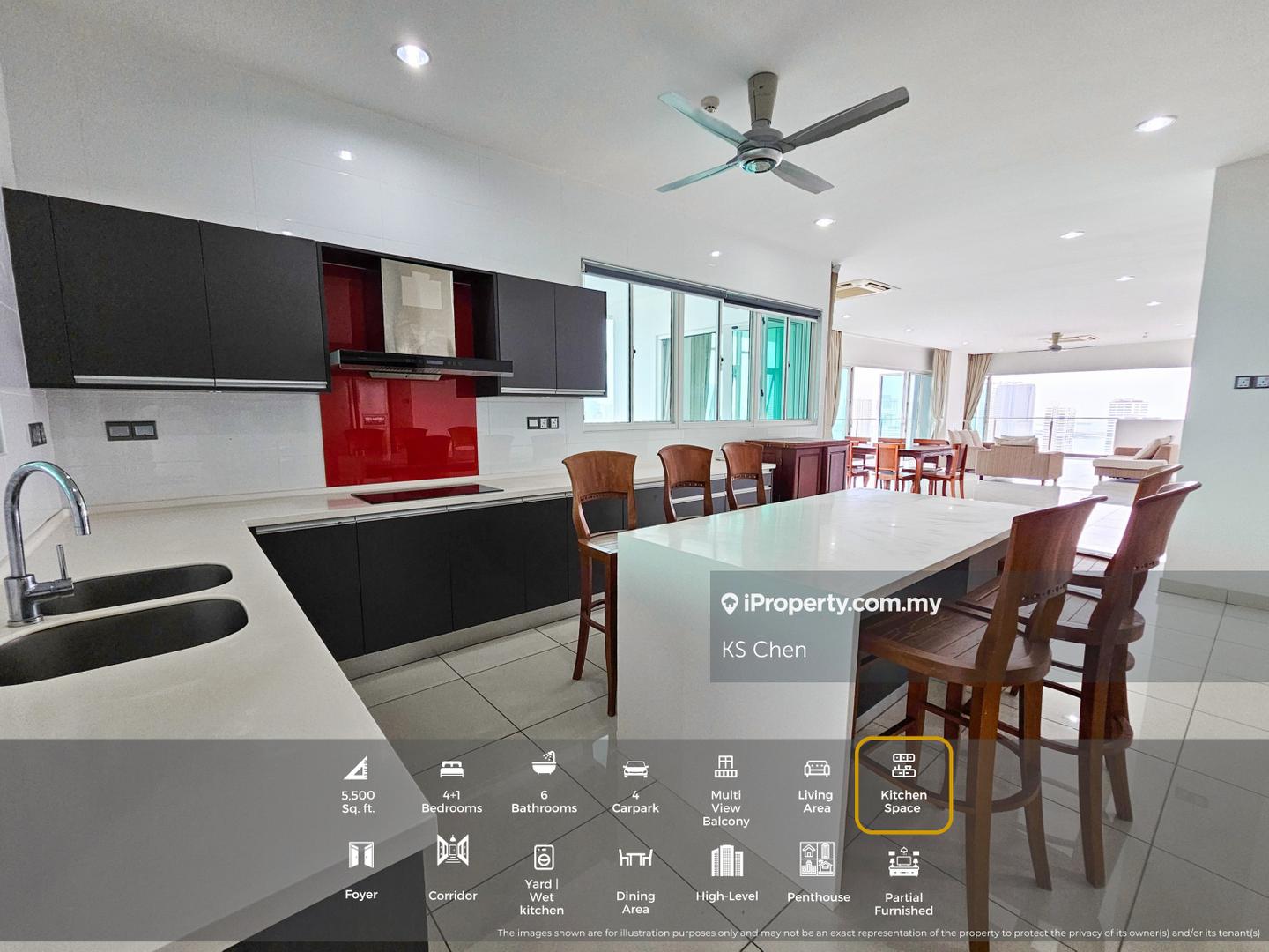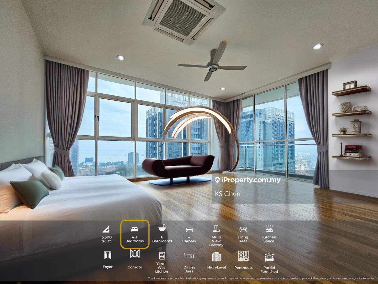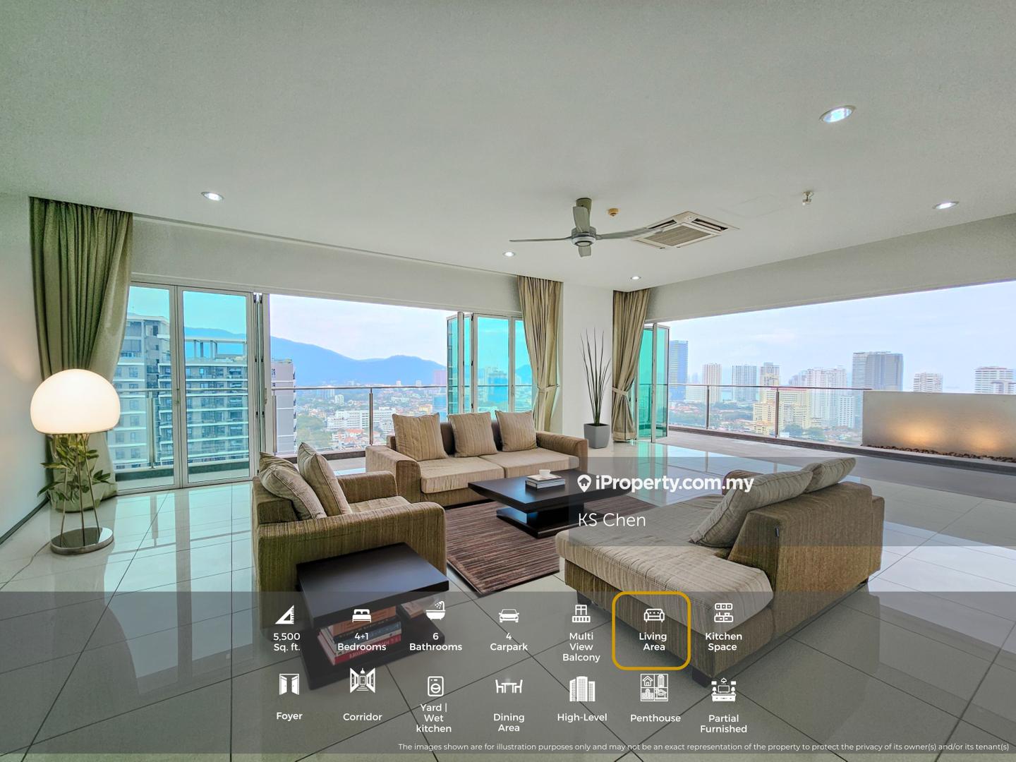 Luxurious Freehold penthouse with private service lift, 4+1 Rooms, 4 carparks & 6 baths. Enjoy breathtaking city, Hill & glimpse of the Sea views from multiple balconies & unwind in your private jacuzzi. Spacious open-plan living with full-height glass panels, designer tiles, custom lighting, and quality built-ins. Ensuite bedrooms offer privacy and comfort with ample wardrobe space. Wet kitchen, service yard & premium fittings. Ultra low-density—only 1 unit per floor. Prestigious Macalister Rd. Near Gurney, top schools & hospitals.