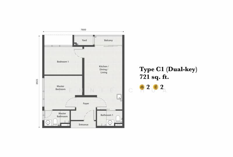 - Built-up Area: 721 sqft