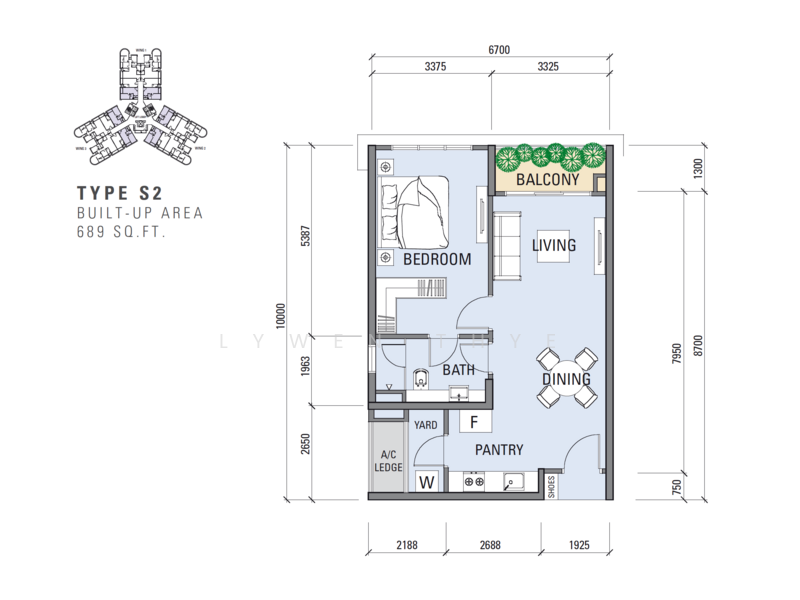 • Built-up: 689 sq.ft.