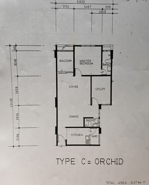 This floor size of this unit is 827 sqft.