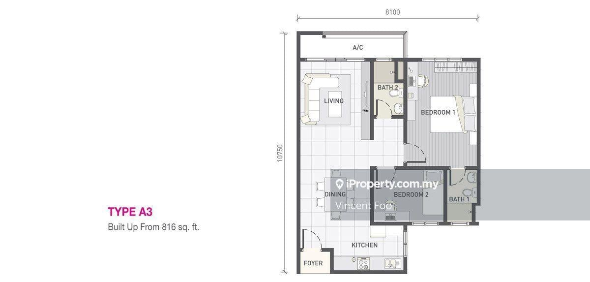 This floor size of this unit is 816 sqft.