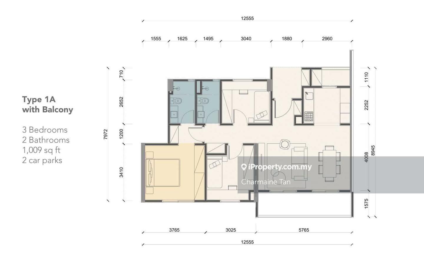 * 1009sf, 3 bedrooms and 2 bathrooms, 2 car parks, with balcony