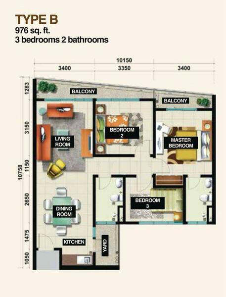 This floor size of this unit is 976 sqft.
