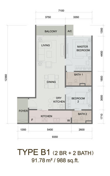 - Size: 988 Sqft