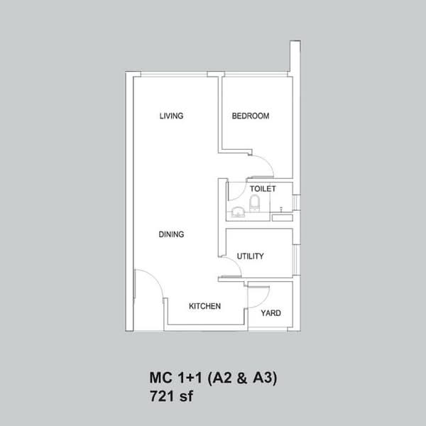 - Built-up Area: 721 sqft