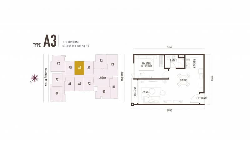 This floor size of this unit is 681 sqft.
