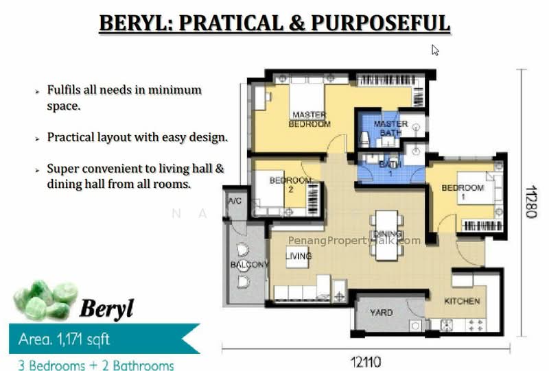 This floor size of this unit is 1,171 sqft.