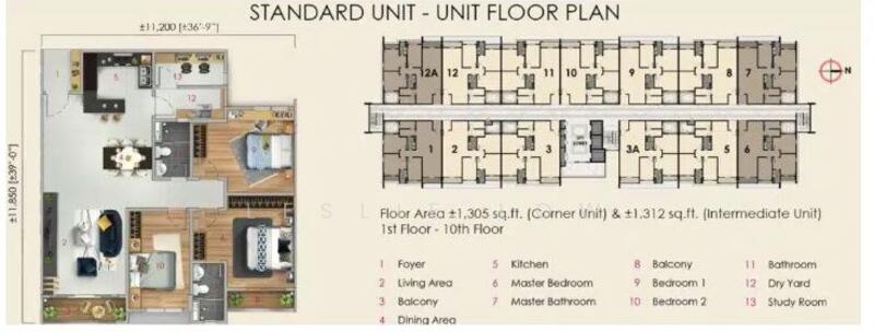 This floor size of this unit is 1,312 sqft.