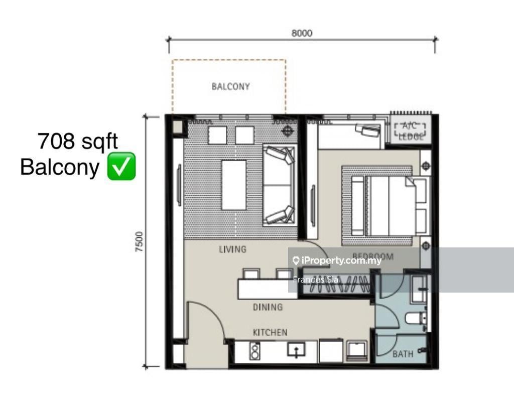 Layout :1 Bedrooms, 1 bathrooms, with Balcony