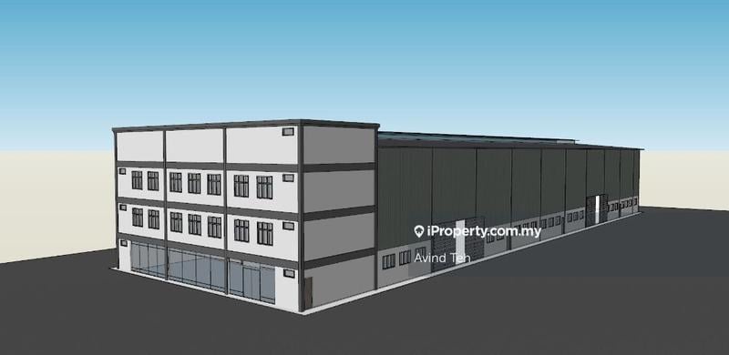 This is a warehouse factory with 3 storey office with roof top for rent in Kapar Klang, Selangor. The subject industrial real estate has a land area of 1.29 acres and a built-up of 34,241 sqft, while the office area is 10,068 sqft (3,356 sqft each). Eave height will be 40 to 50 ft. The warehouse has TNB Power Supply up to 400 amp, with sprinkler. CCC will be issued in October 2024. Last but not least it with a guard house with large gate.