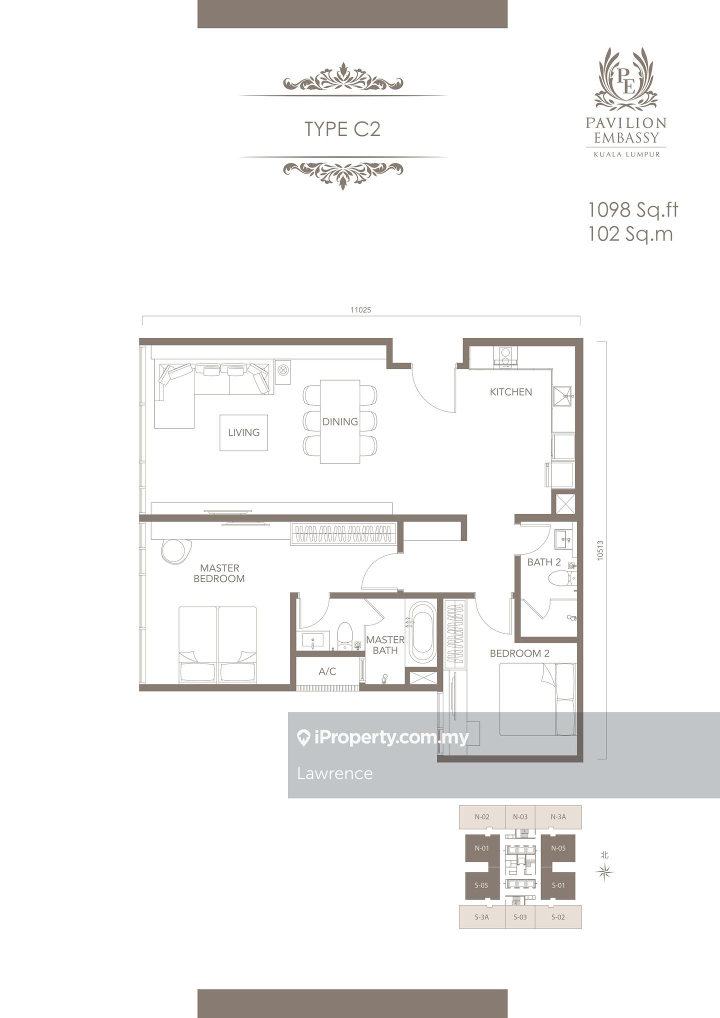 Size : 1,098 sqft