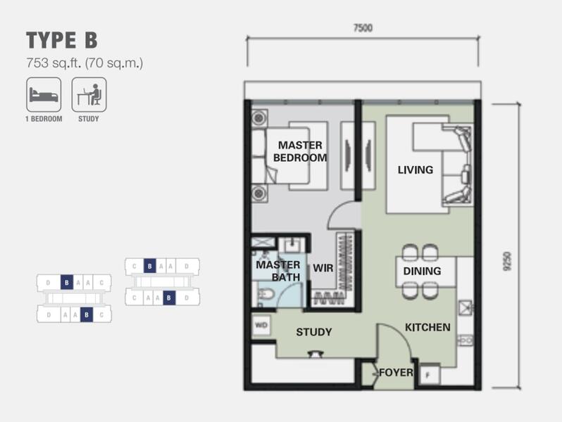 This floor size of this unit is 753 sqft.