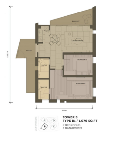 2 Bedrooms | 2 Bathrooms | 1,076 sqft | Furnished