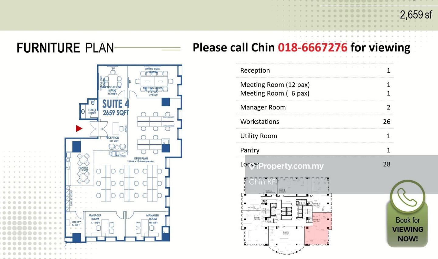 For viewing or more furnished office options in KL city, please contact: