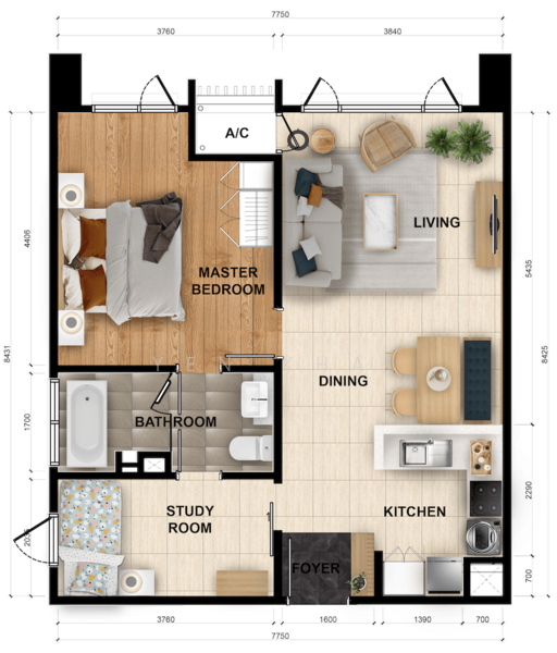 b. 711sqft, 1+1bedroom 1bath, RM4800 - RM5900 Fully Furnished