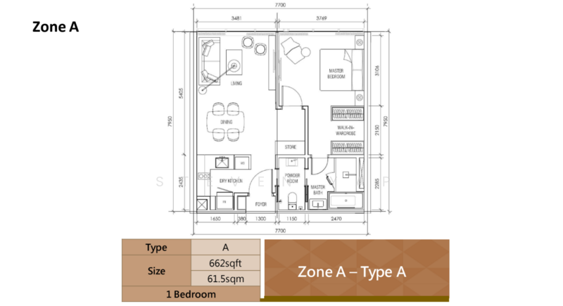* 662 sqft (61.5 sqm)