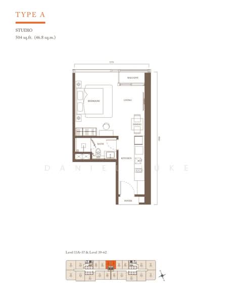 This floor size of this unit is 504 sqft.