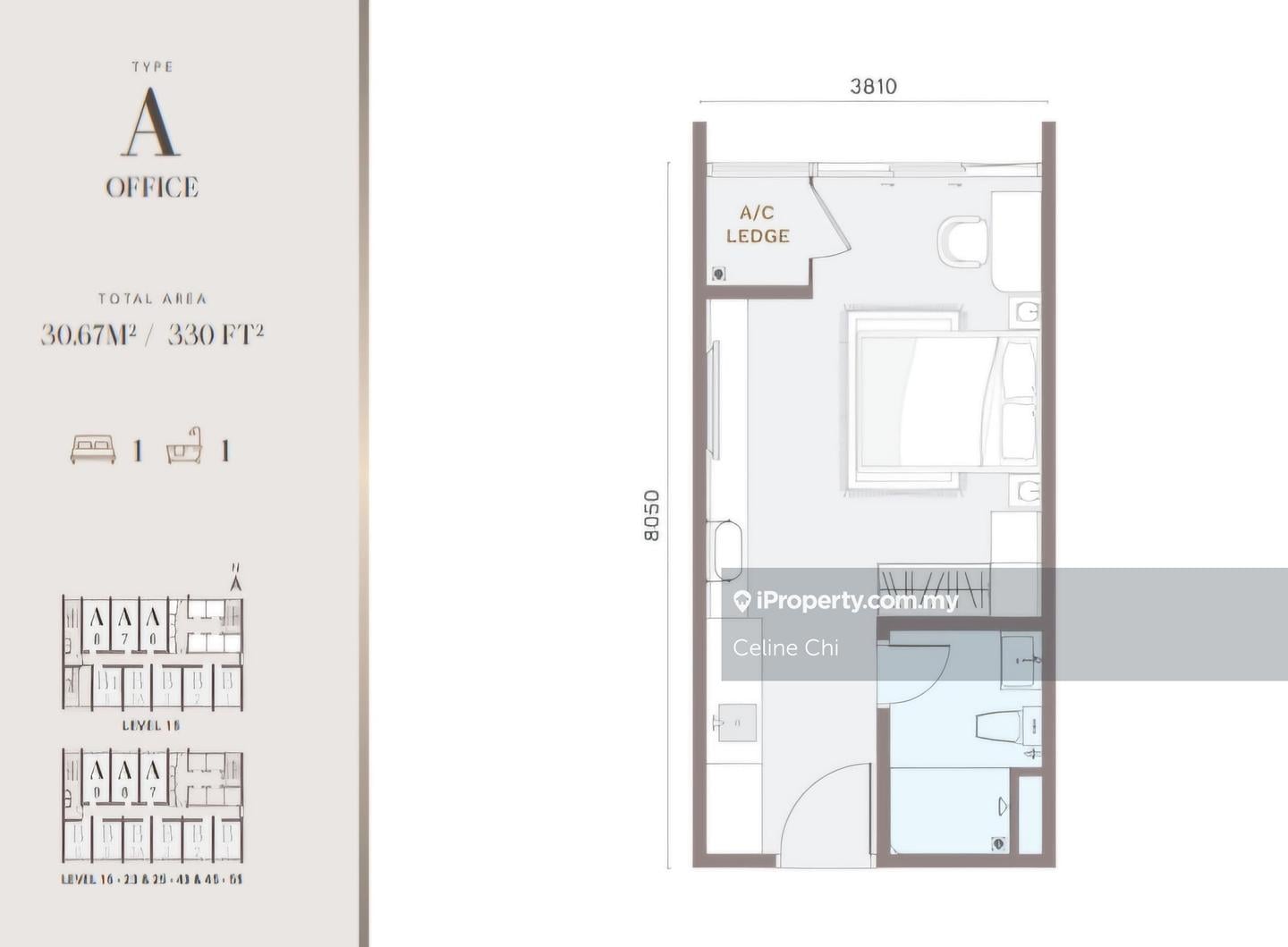 This floor size of this unit is 330 sqft.