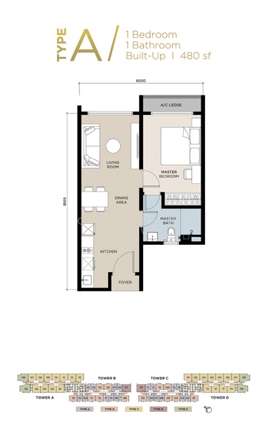This floor size of this unit is 480 sqft.