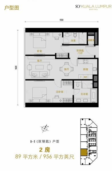 956 sqft | 约88.8㎡