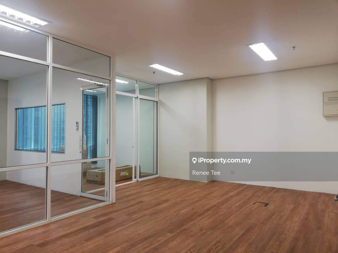 Comes with partitions, wood texture vinyl flooring, verticle blinds, air cond and lights.