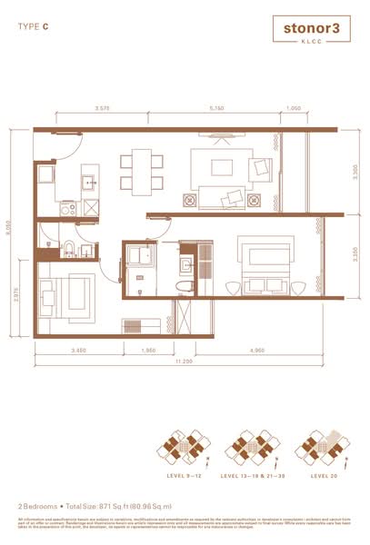 This floor size of this unit is 871 sqft.