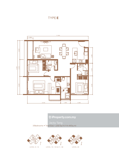 This floor size of this unit is 1,232 sqft.