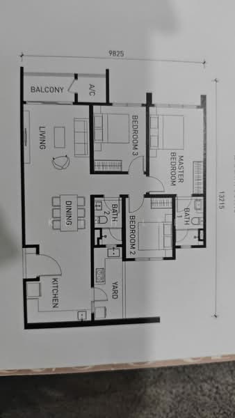 This floor size of this unit is 1,188 sqft.