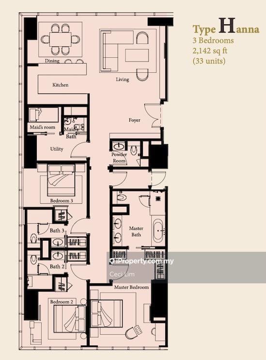 This floor size of this unit is 2,142 sqft.