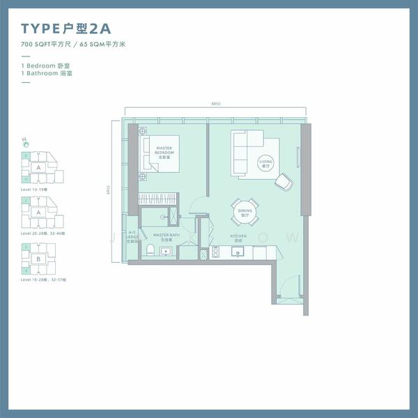 - 1 bedroom & 1 Bathroom