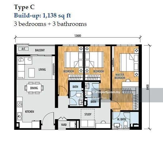 Also available, 3bedroom 1025sf, corner design, RM4,000 to RM4,500.