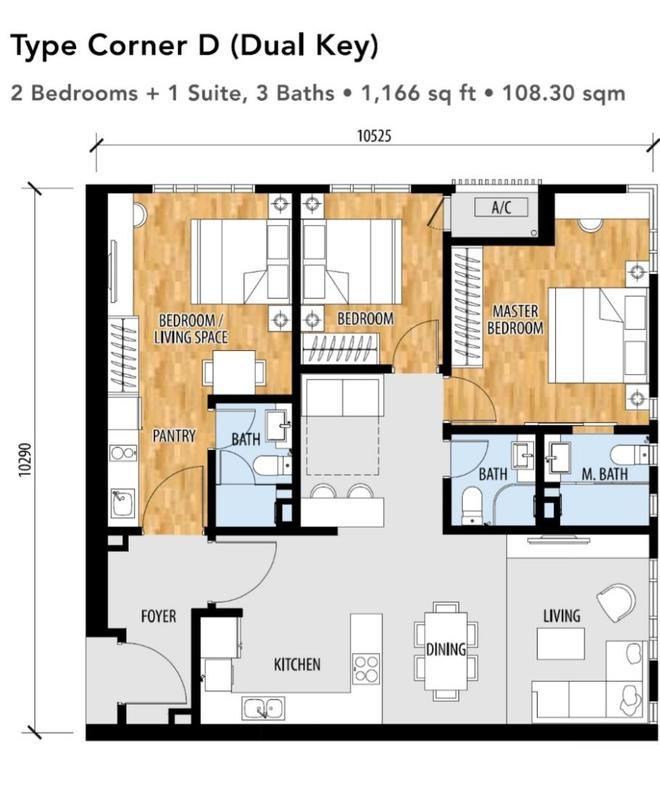 * Dual key, 2+1r, 1,166sf