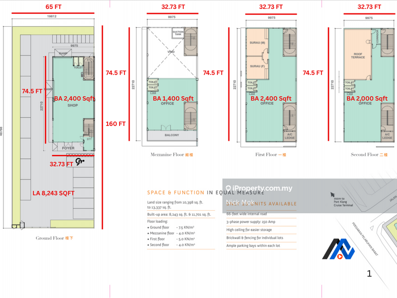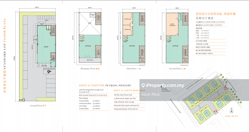 Unlock the ideal commercial space at Indah Square! Featuring 3-storey Semi-D factories with land size from 10,398 SQFT and build-up from 8,243 SQFT. Equipped with 150 Amp 3-phase power, 66-ft wide internal roads, high ceilings, brick walls with Fencing for individual lots, and ample parking bays for each lot. Floor loading up to 7.5kN/sqm.