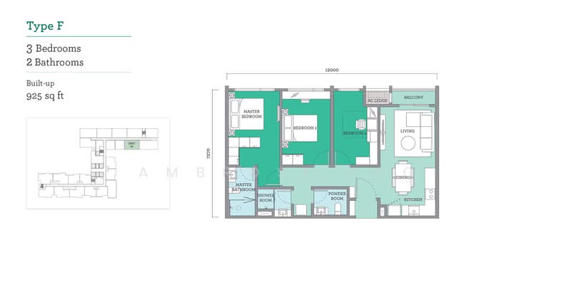 This floor size of this unit is 925 sqft.
