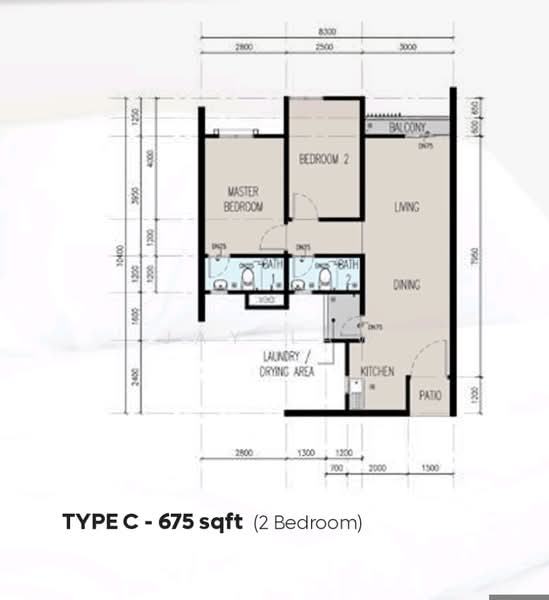 Type C: A clever, efficient unit suited for young couples or astute investors seeking high rental returns near the ART line.