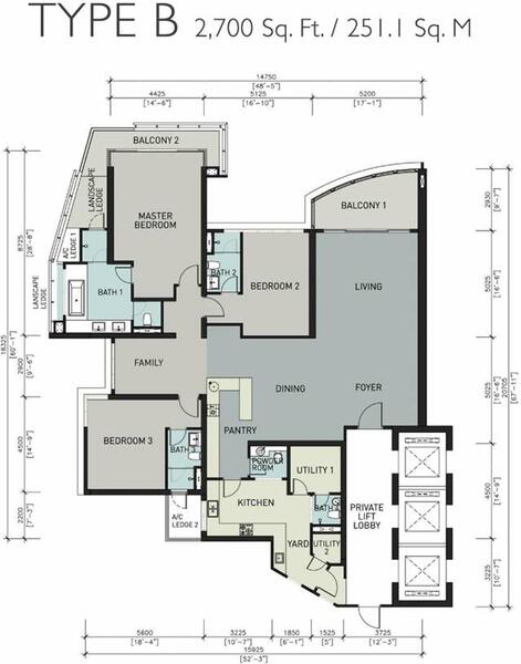 This floor size of this unit is 2,700 sqft.