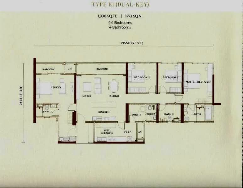 This floor size of this unit is 1,906 sqft.