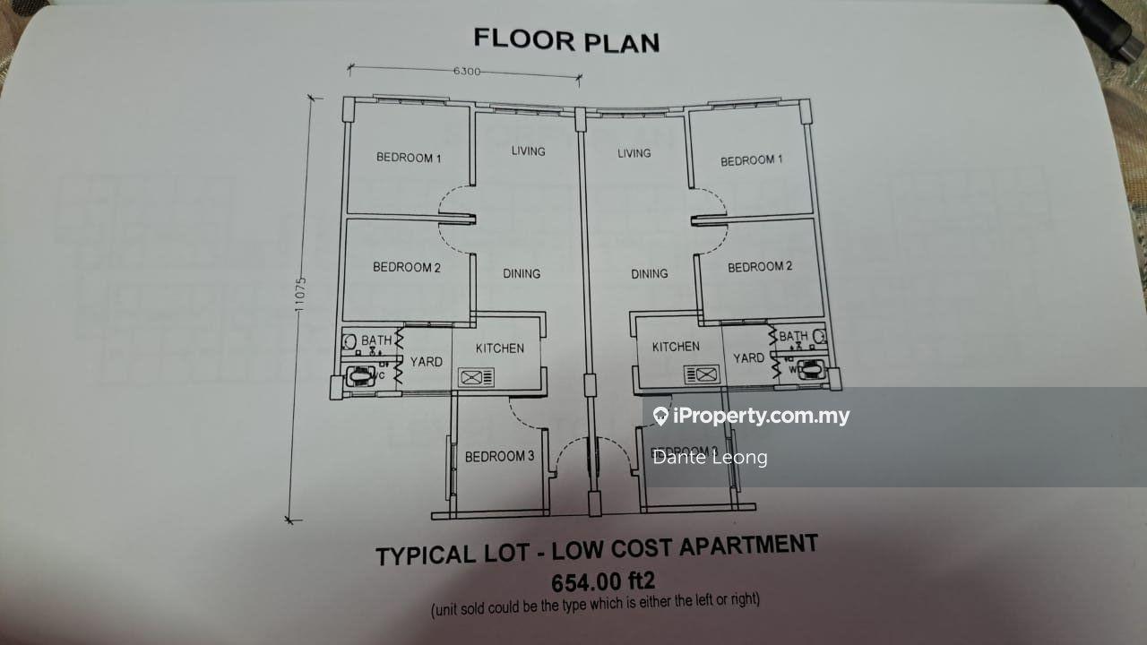 This floor size of this unit is 654 sqft.