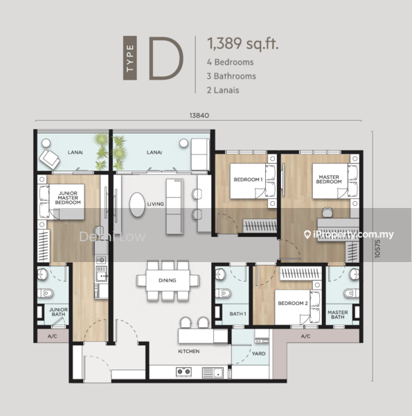 Type D - 1,385sqft (4B3B c/w Lanai) (Dual-Key concept)