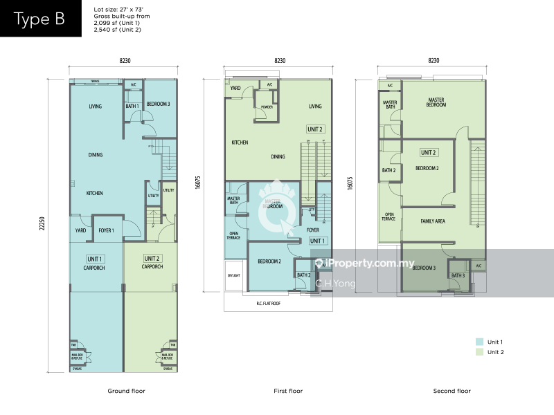 This floor size of this unit is 2,573 sqft.