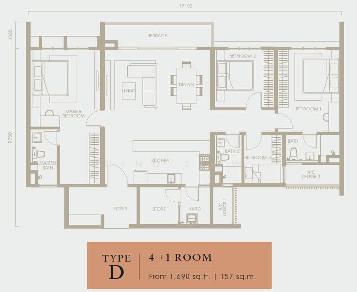 This floor size of this unit is 1,690 sqft.