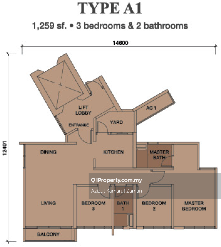 This floor size of this unit is 1,259 sqft.