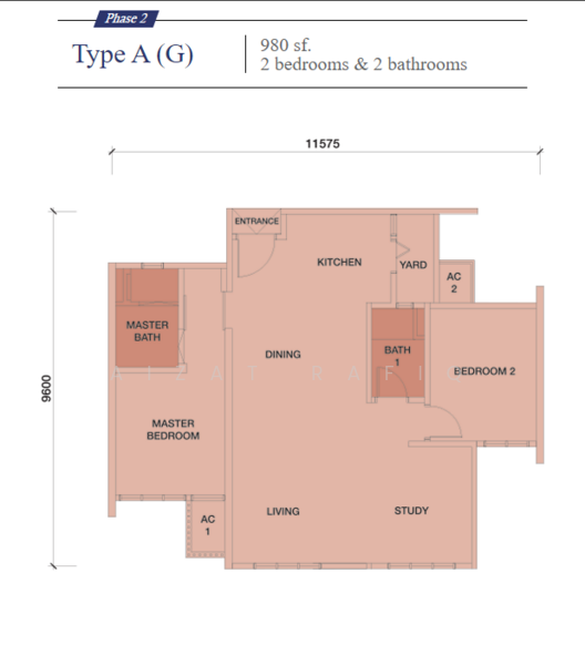 This floor size of this unit is 969 sqft.