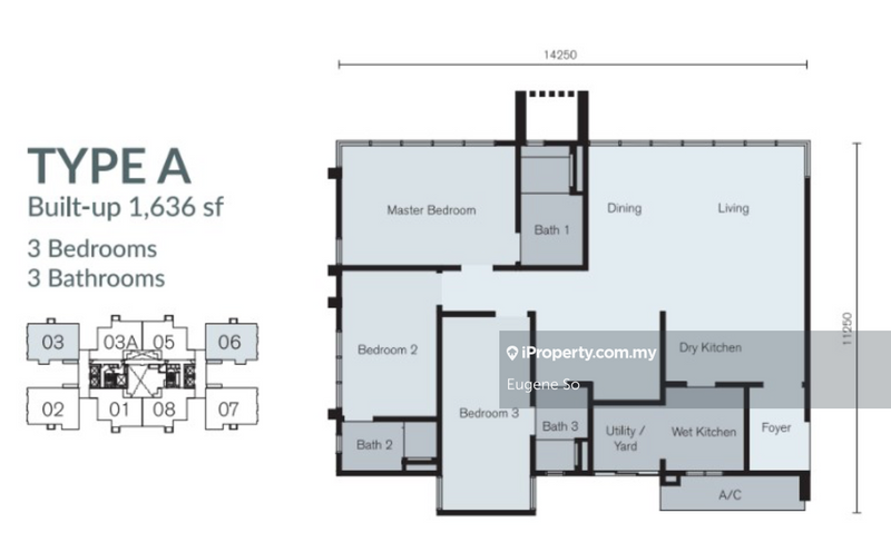 Type A (1,636sf), 4R3B with 2-4 side-by-side car park.