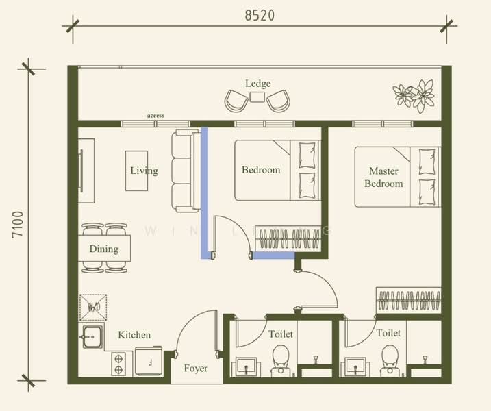 861sqft | 2 Room | 2 Bath | 1 Carpark